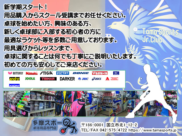多摩スポーツは卓球用品販売を専門とするお店です。
