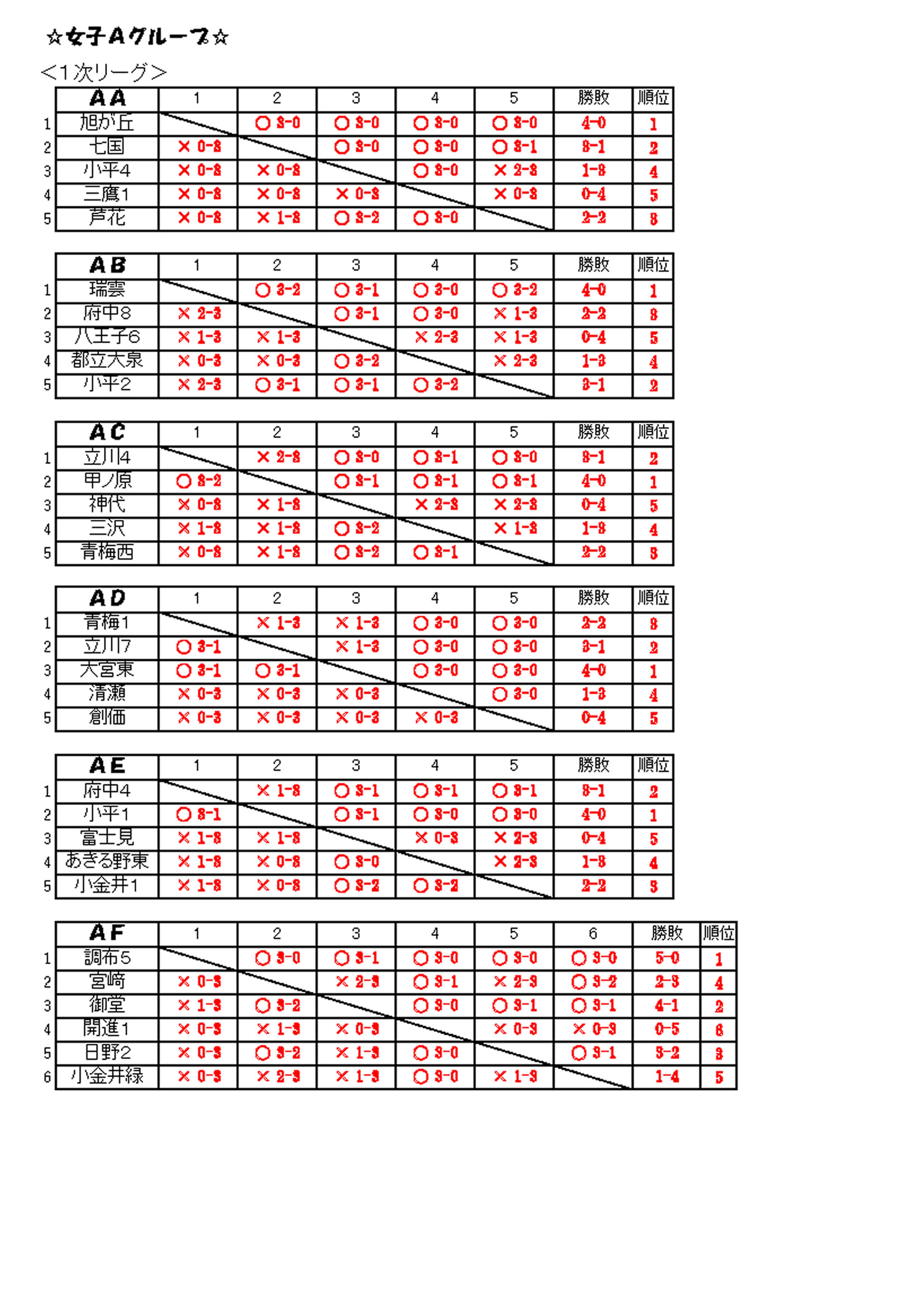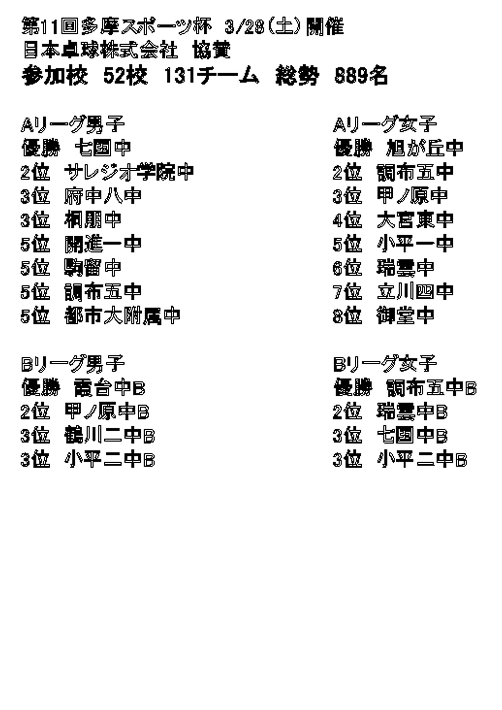 第11回多摩スポーツ杯の結果